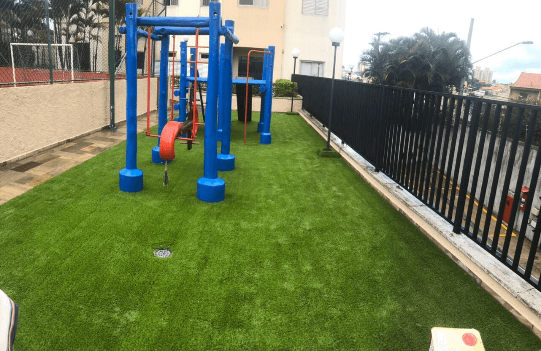 É necessário um piso firme e com um caimento para que ocorra o escoamento da água pela grama, tendo em vista que ela é impermeável. Caso haja no local infiltração a grama sintética não faz com que a infiltração acabe.